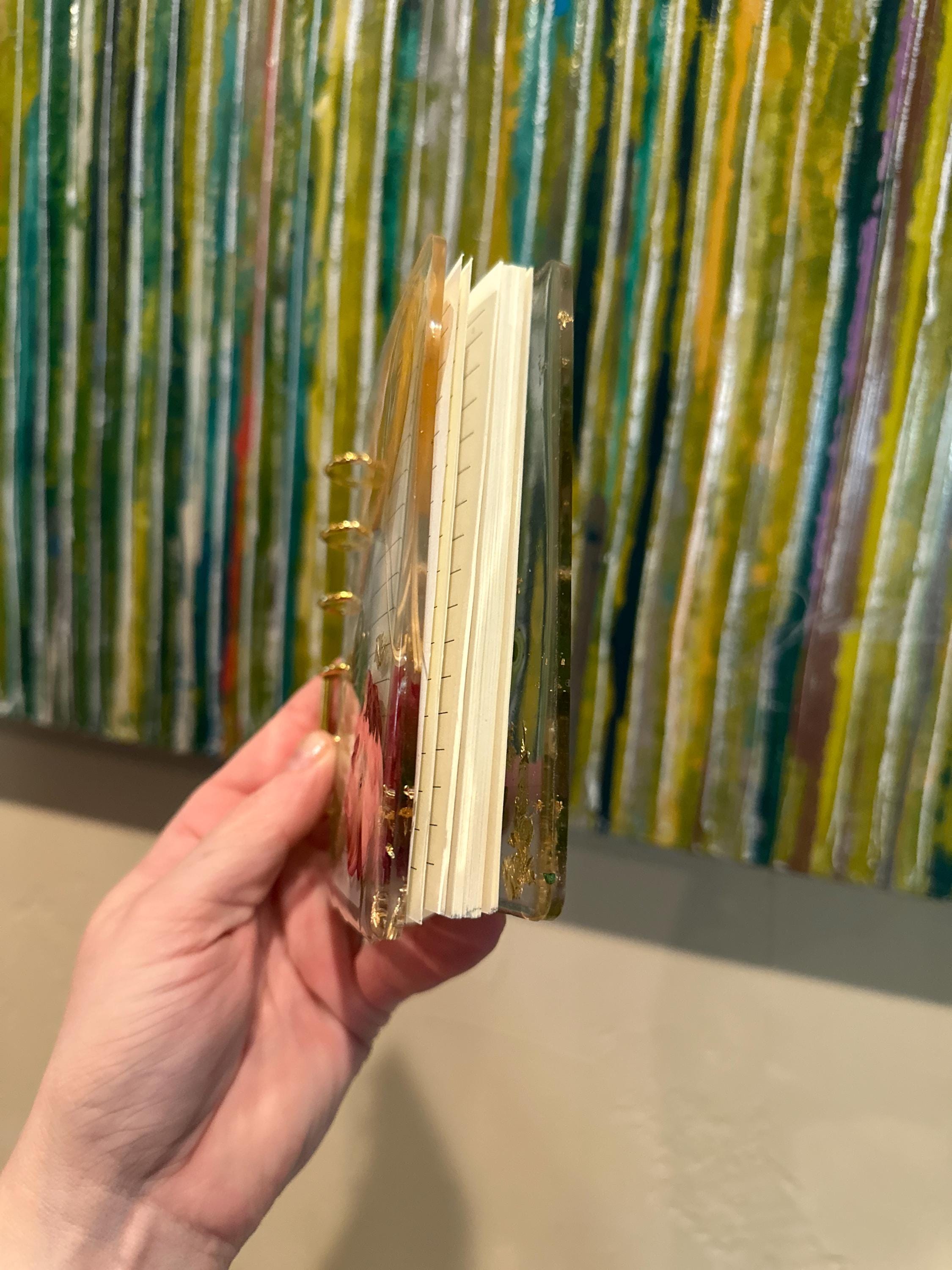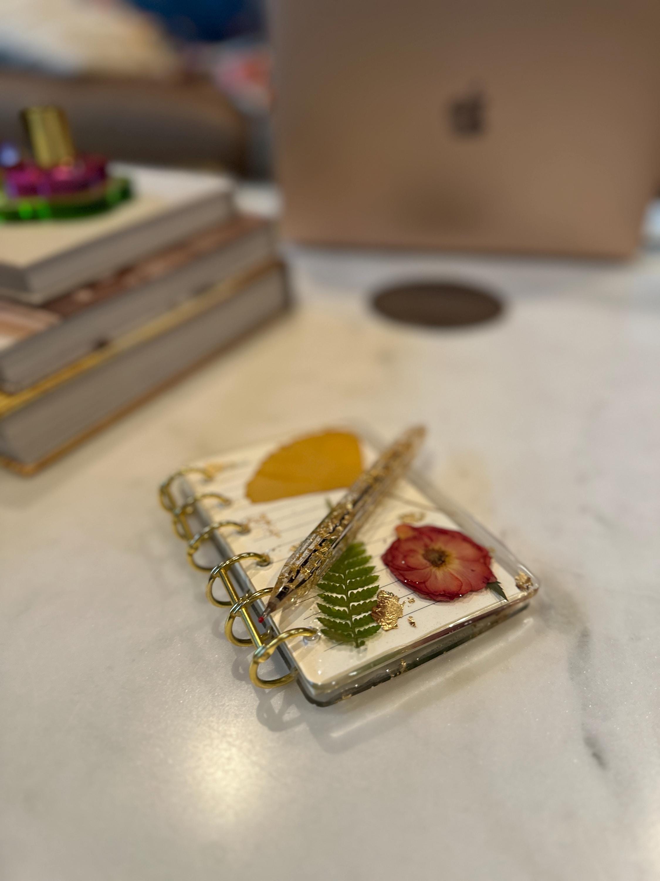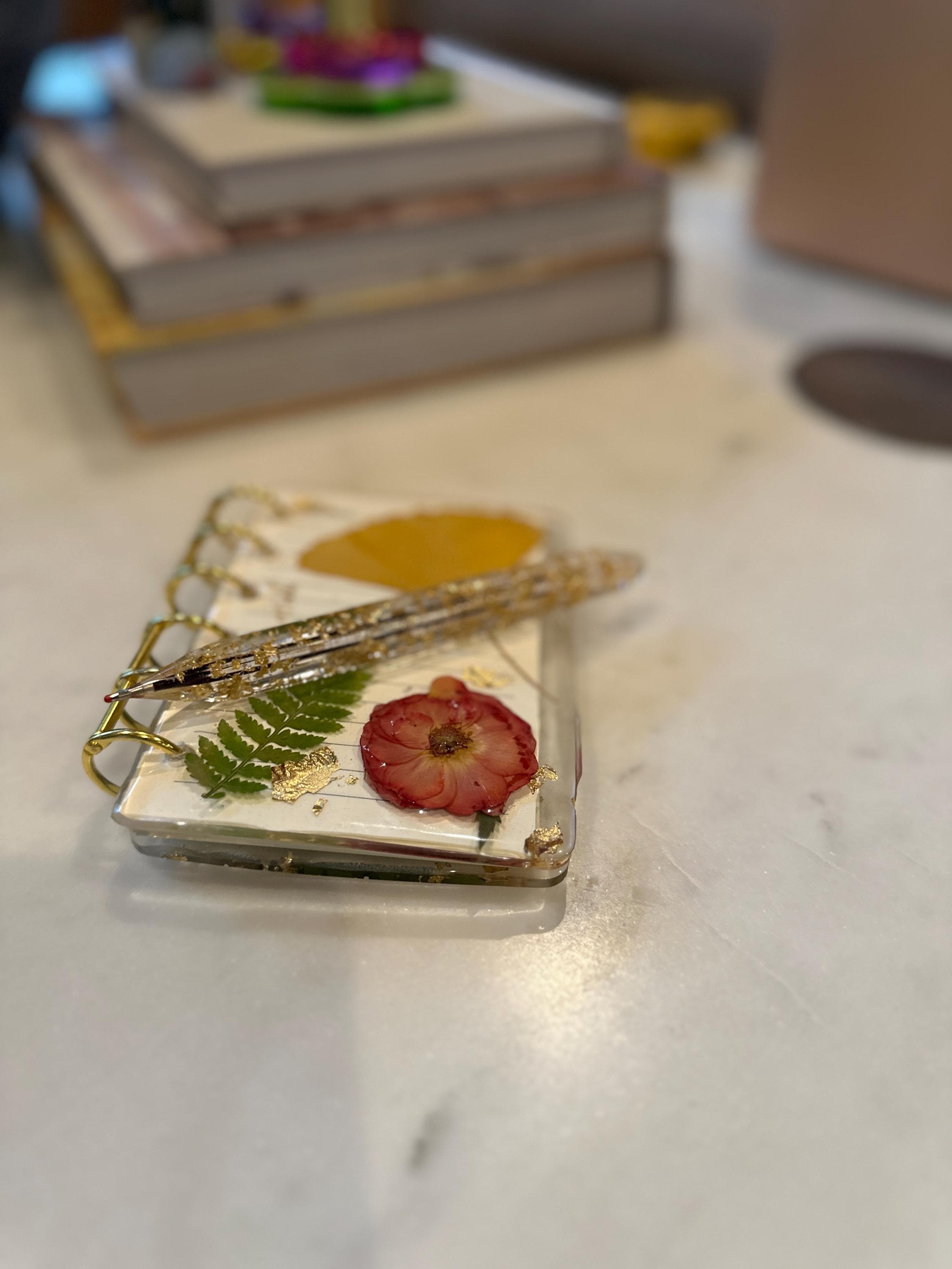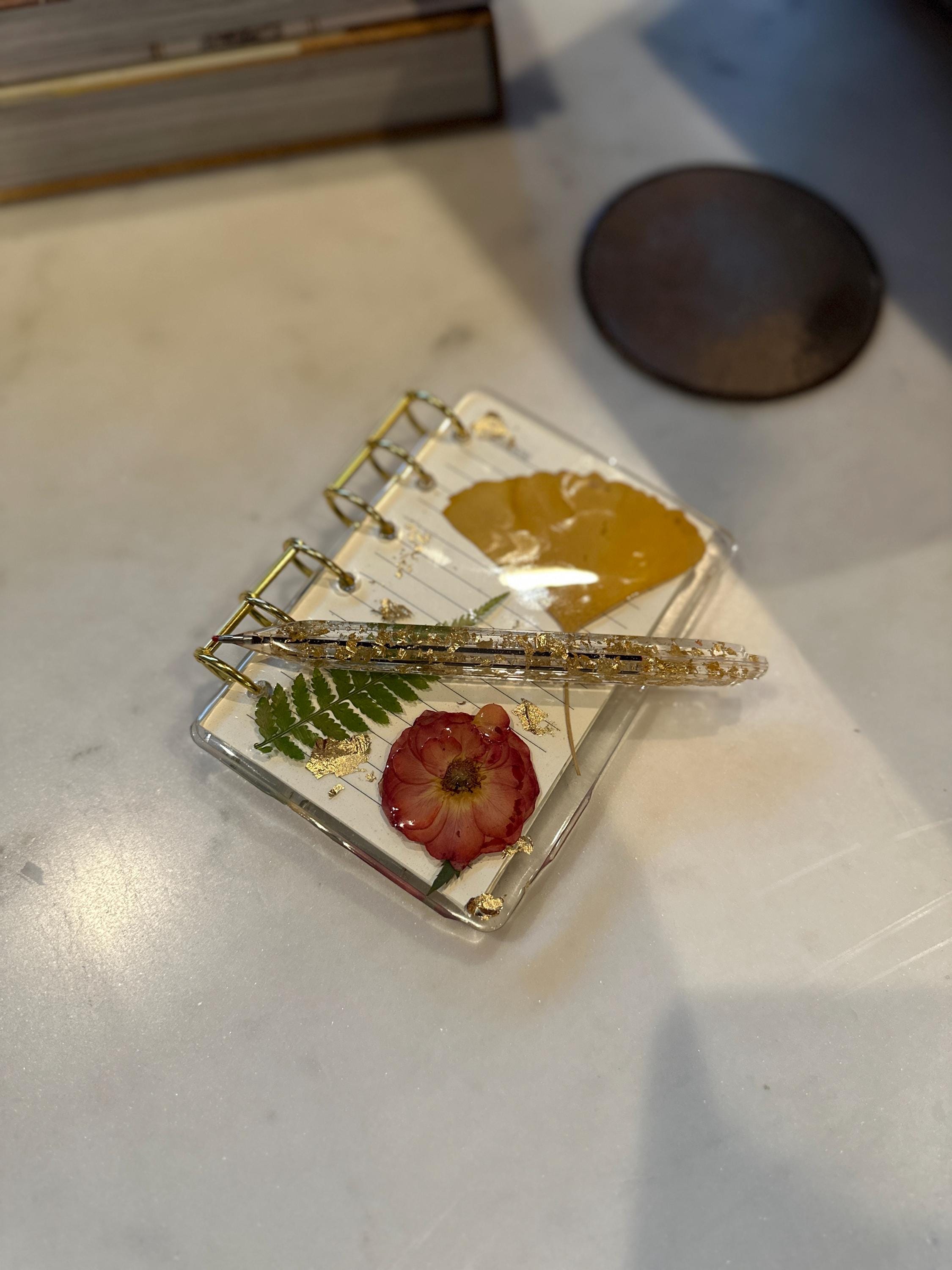 Elevate your planning and journaling with this exquisite, handmade clear resin notebook and matching pen set. It's not just stationery; it's a piece of functional art—the perfect gift for the planner addict, student, or entrepreneur in your life!