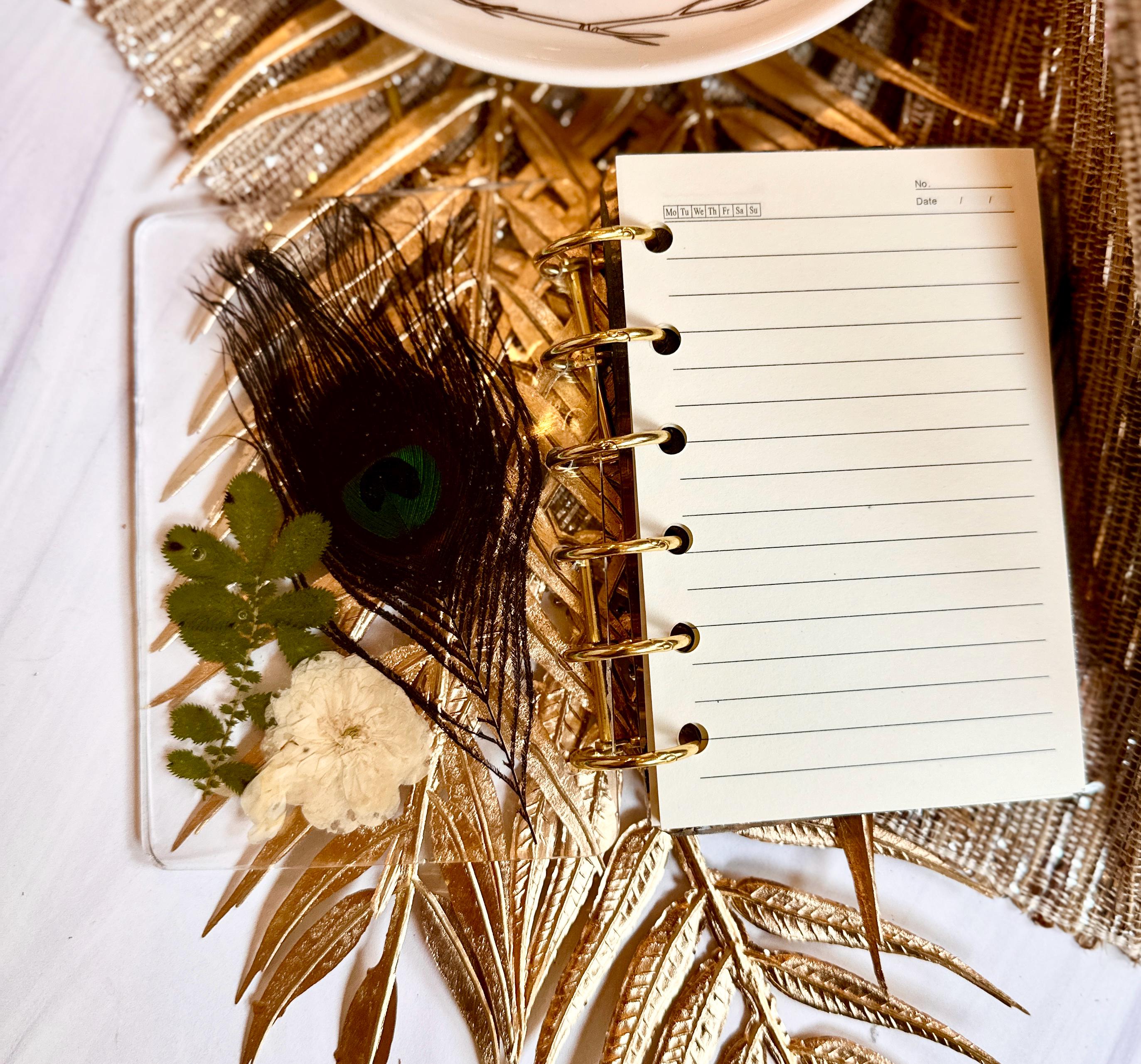 A5 Weekly Schedule Paper: The notebook is filled with A5-sized beige lined paper perfect for weekly scheduling, to-do lists, notes, or journaling. The soothing beige tone is easy on the eyes.