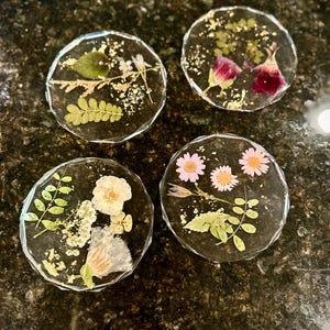 Real Botanicals: Carefully pressed flowers and leaves are permanently preserved within the resin.