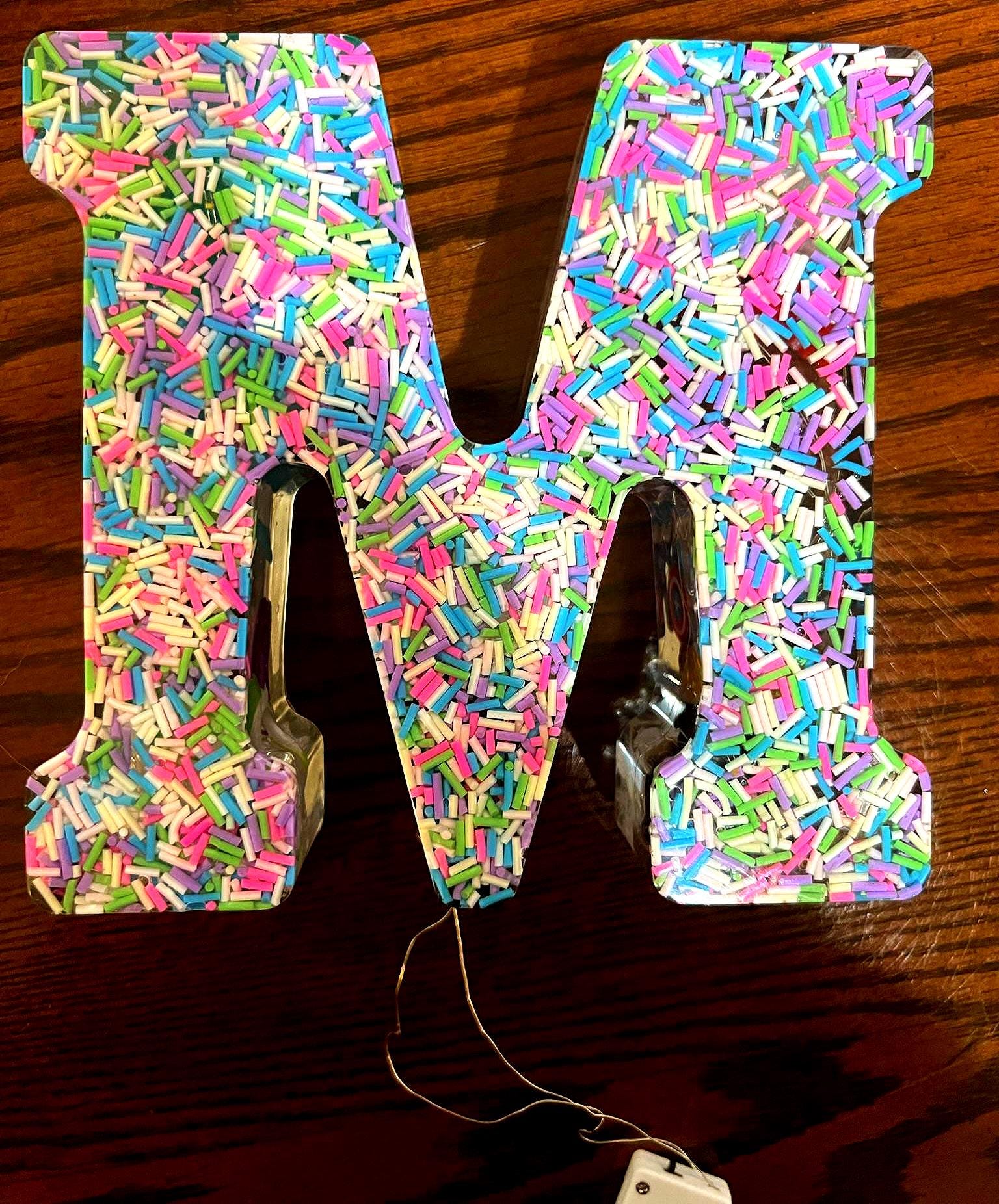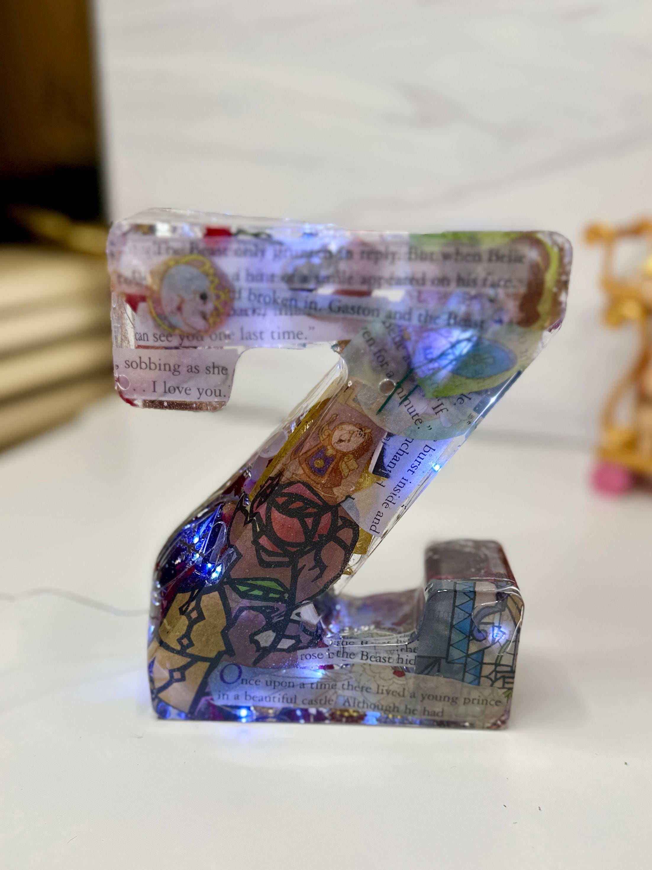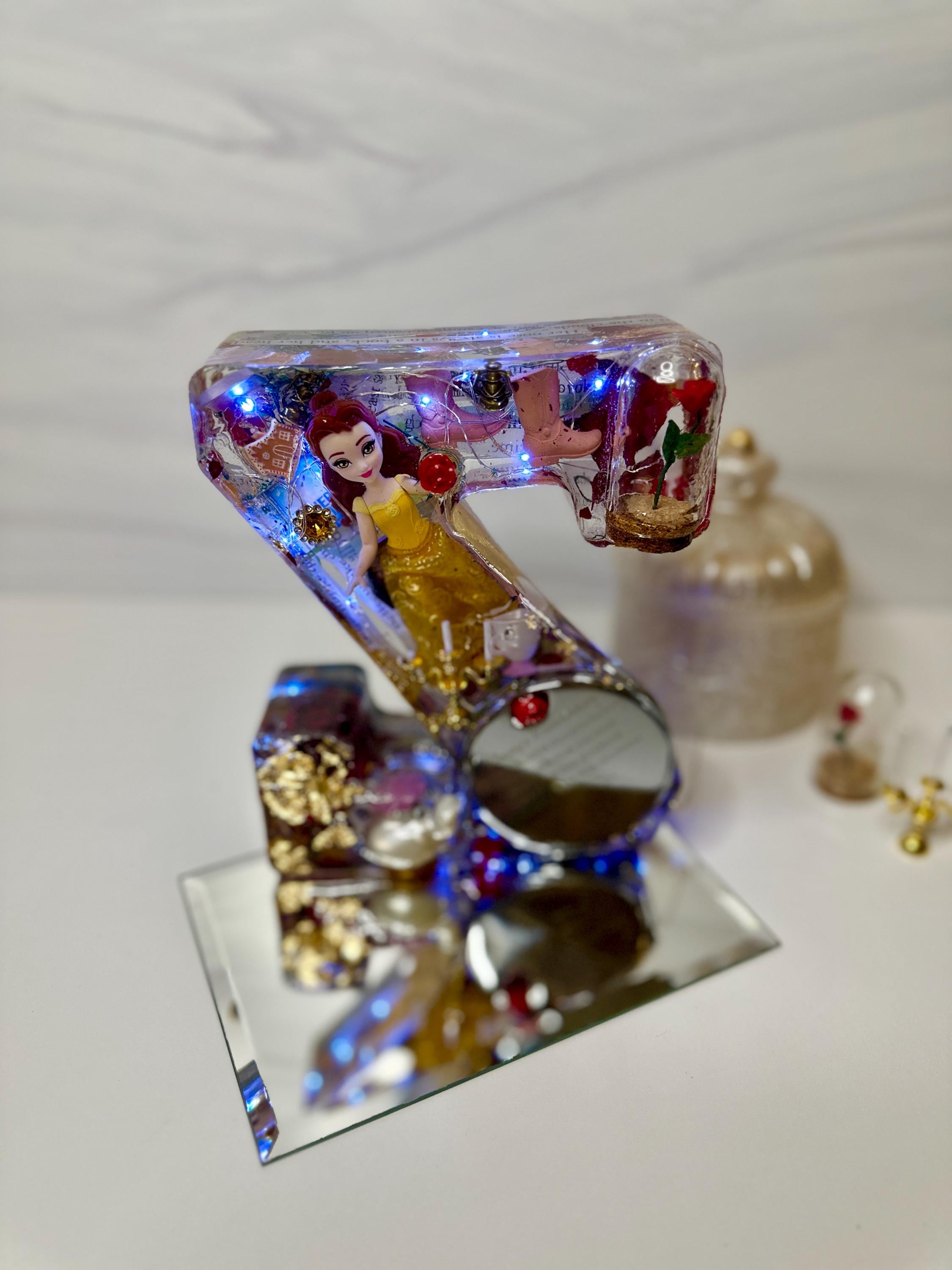 Turn your letter into a functional piece of magic! For a small upgrade, we can embed battery-operated LED fairy lights or a small light stand to create a gorgeous, soft-glow Resin Night Light. The embedded flowers and sparkly elements truly come alive when illuminated!