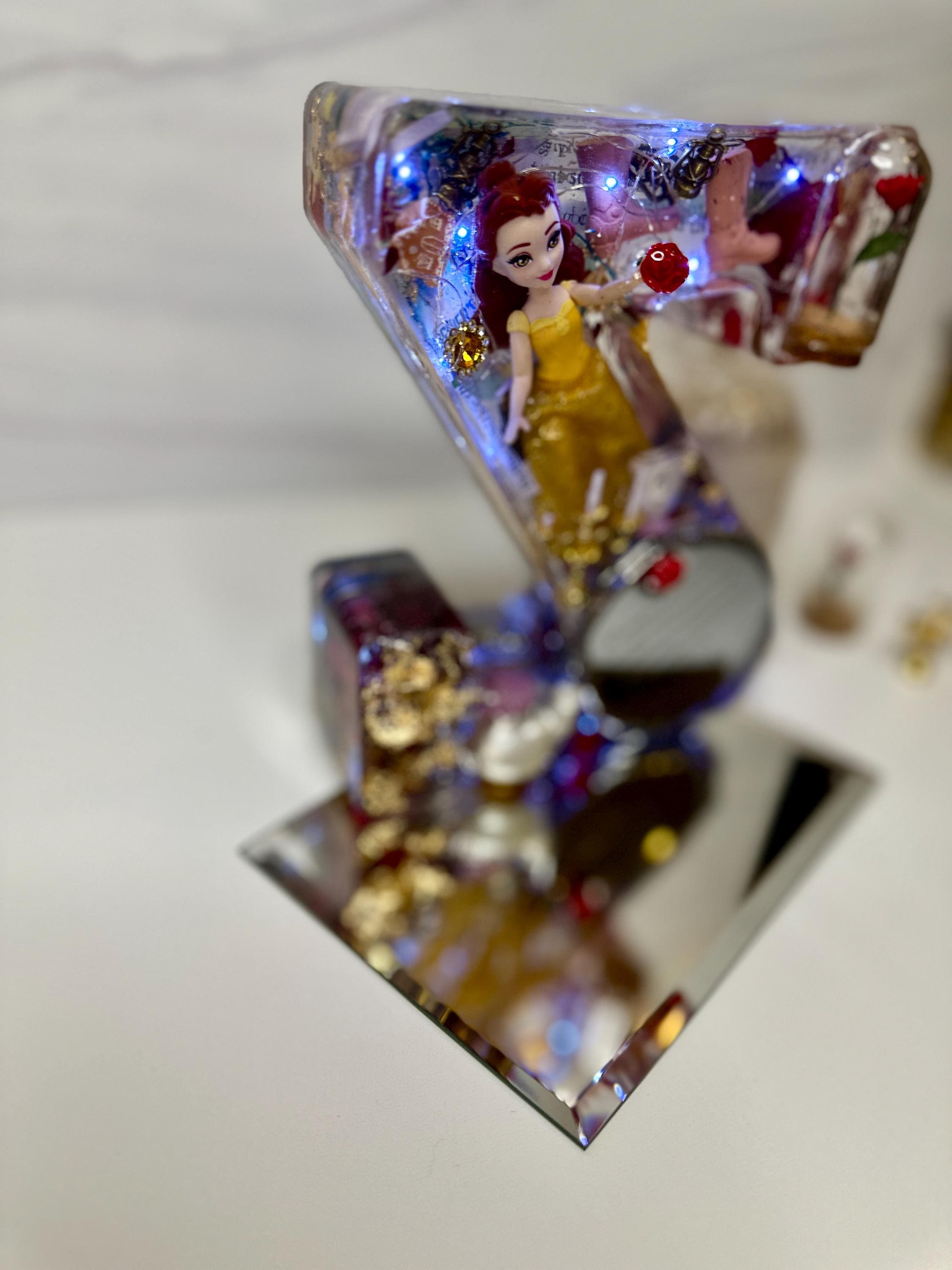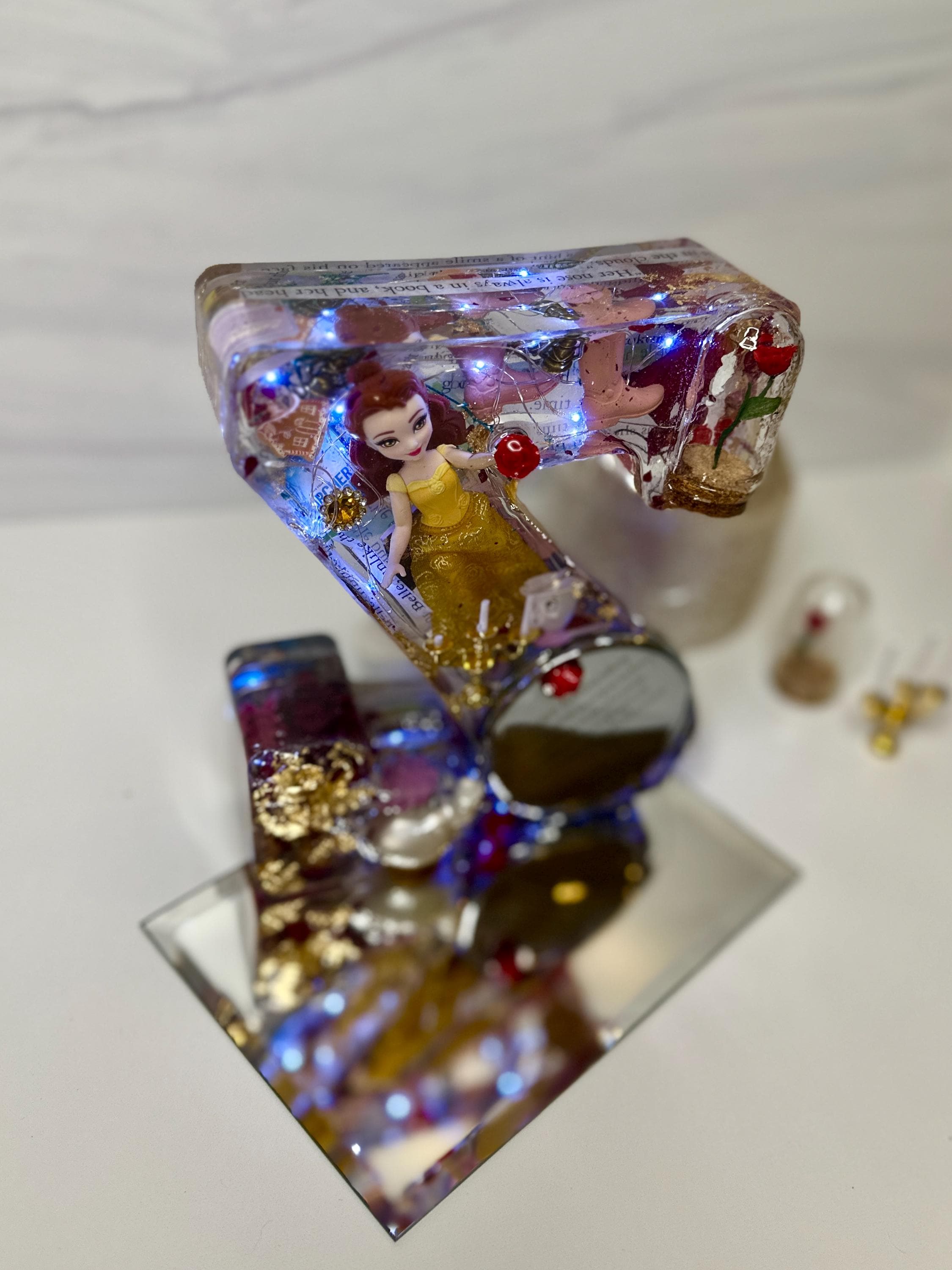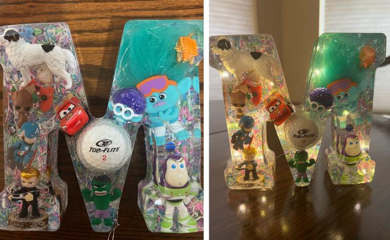 Turn your letter into a functional piece of magic! For a small upgrade, we can embed battery-operated LED fairy lights or a small light stand to create a gorgeous, soft-glow Resin Night Light. The embedded flowers and sparkly elements truly come alive when illuminated!