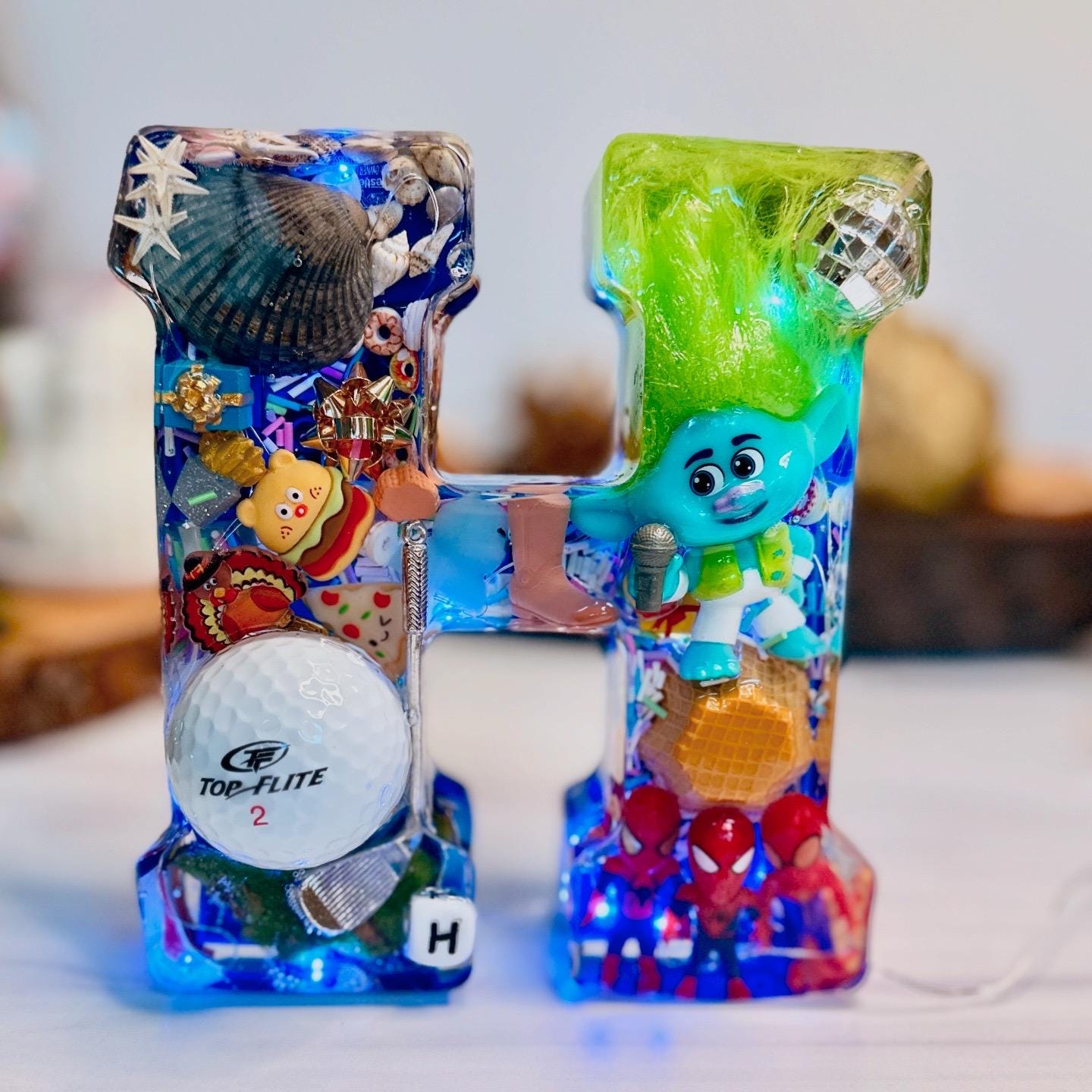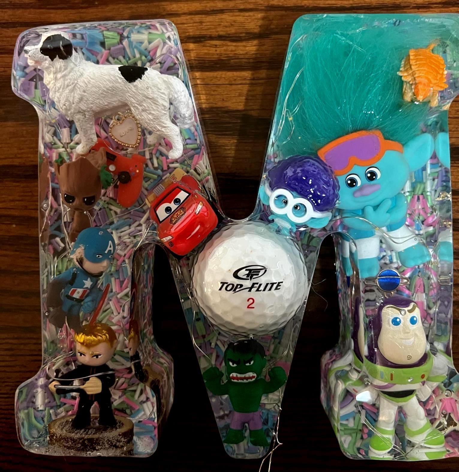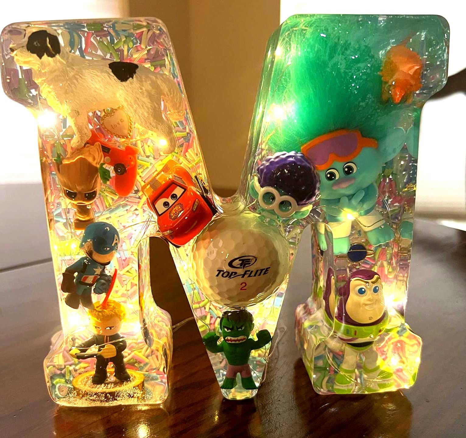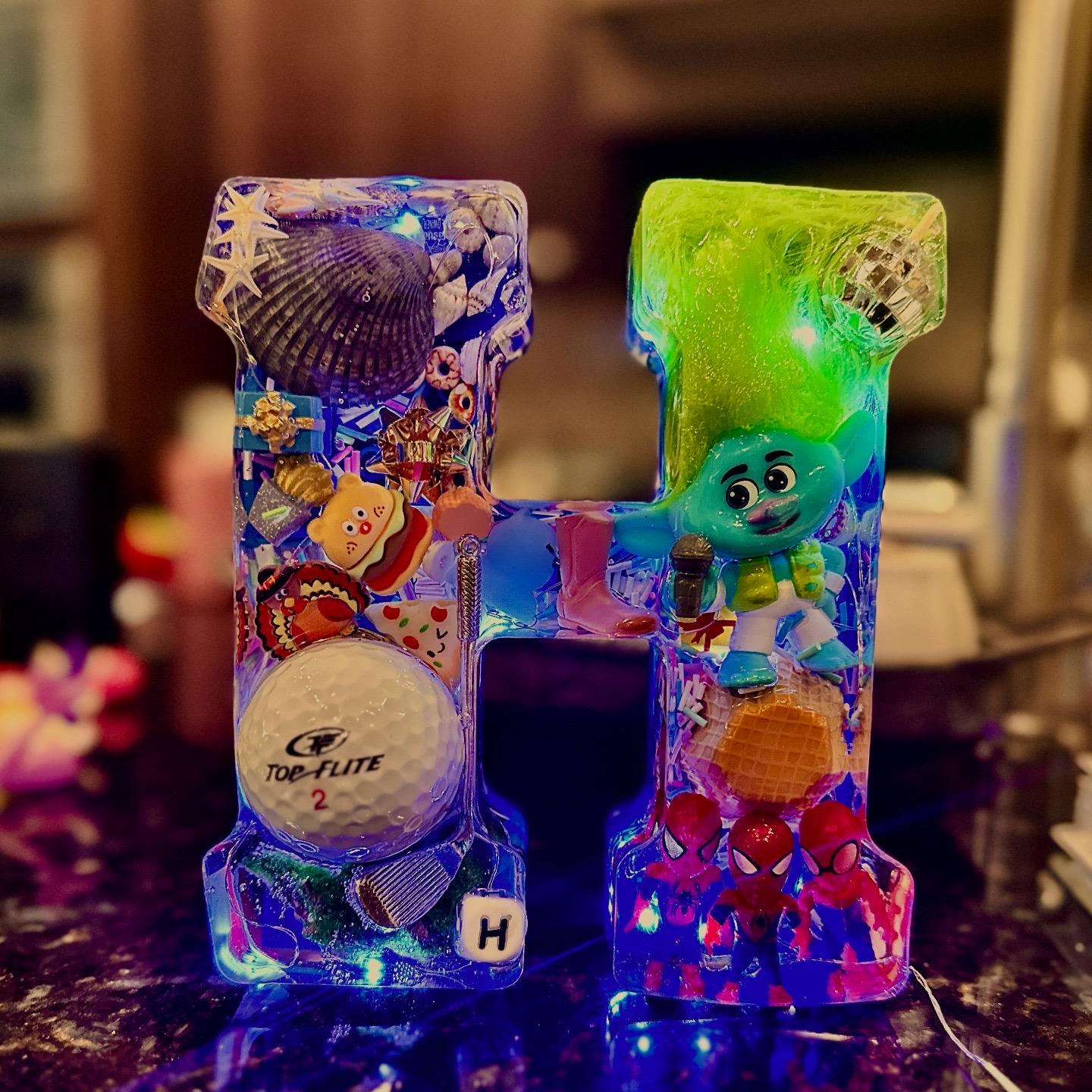 Simply message what you want included; a little about who this would be for, and what they are passionate about right now, like their favorite foods, dream travel destinations, favorite sports or sports teams, movies, toys, hobbies, age-specific (are they in their Taylor era, for example?), etc. I can then help track down items and come up with ideas for you to consider. You can message me your "list" and I'll do my best to fill it with creative items that represent the personality behind the custom Resin Letter we create.