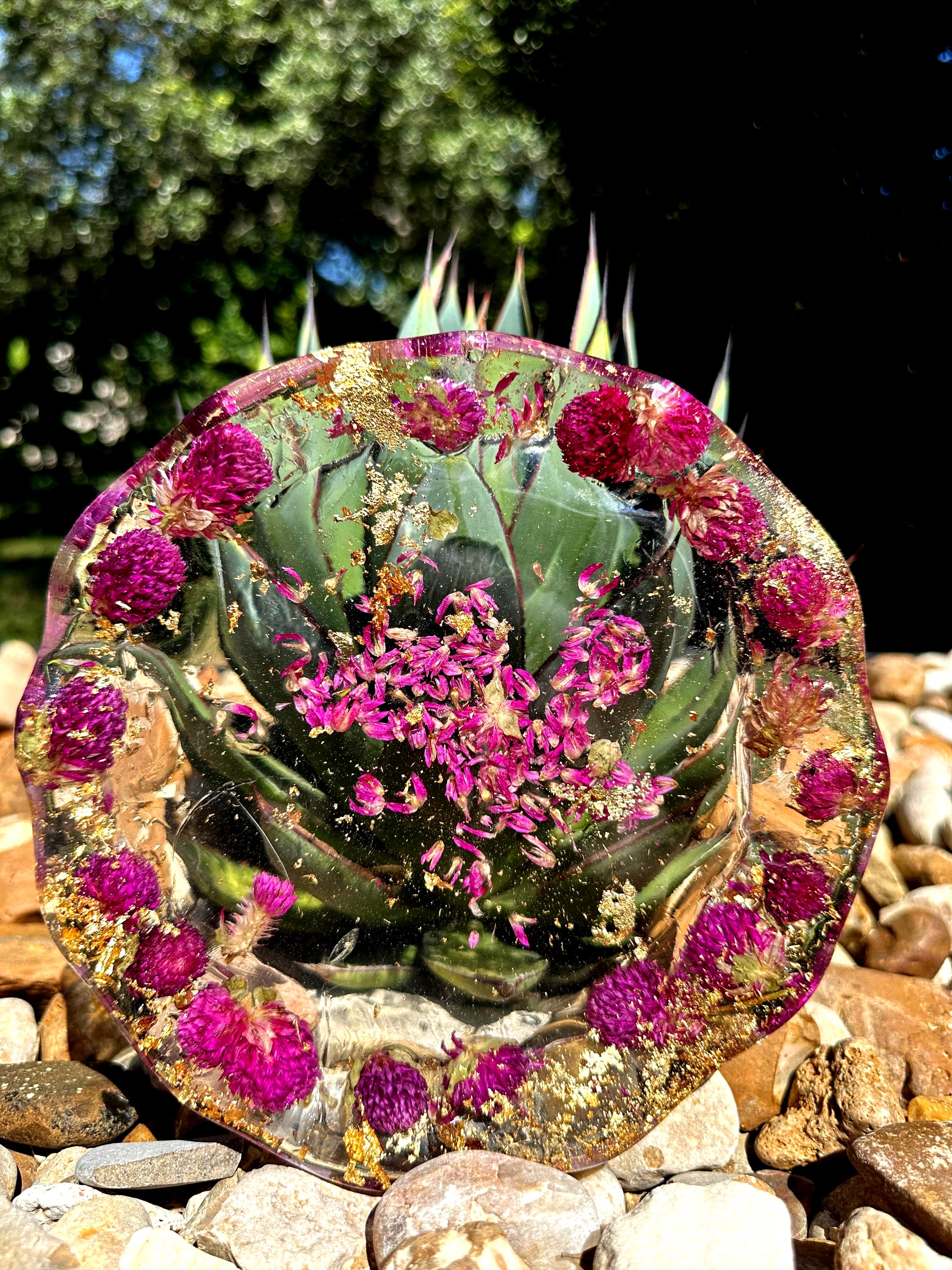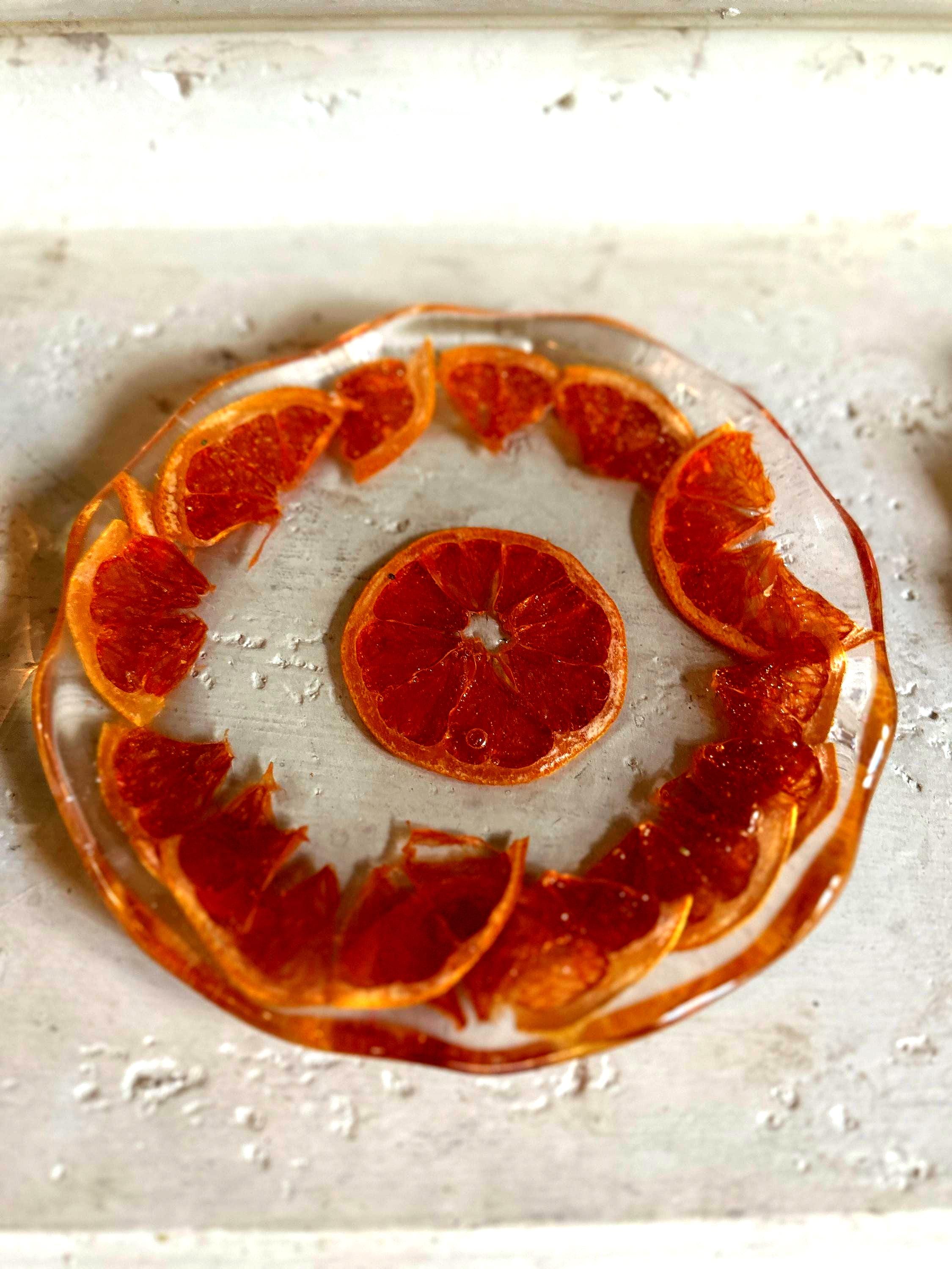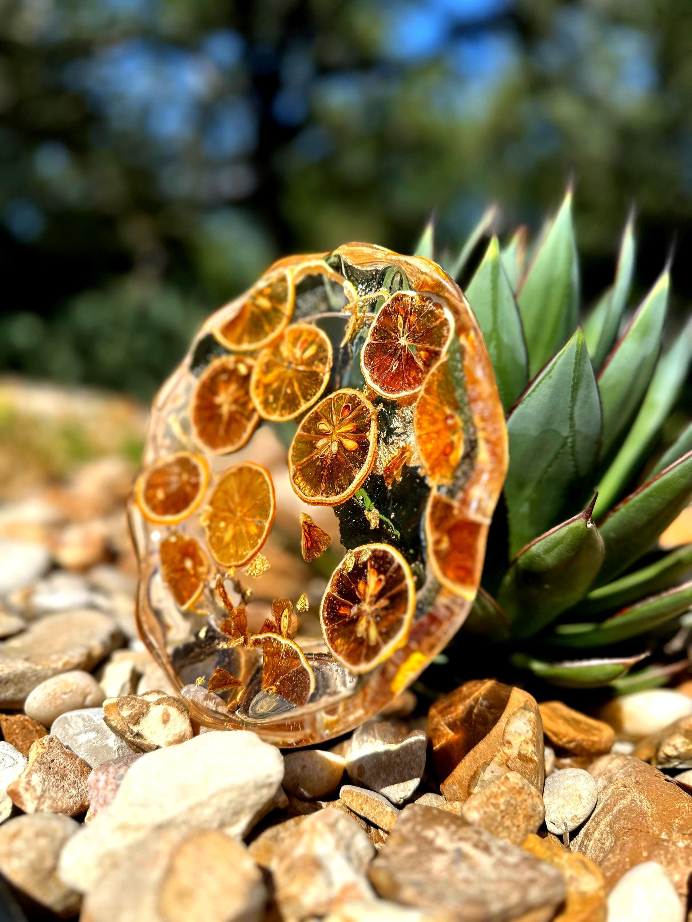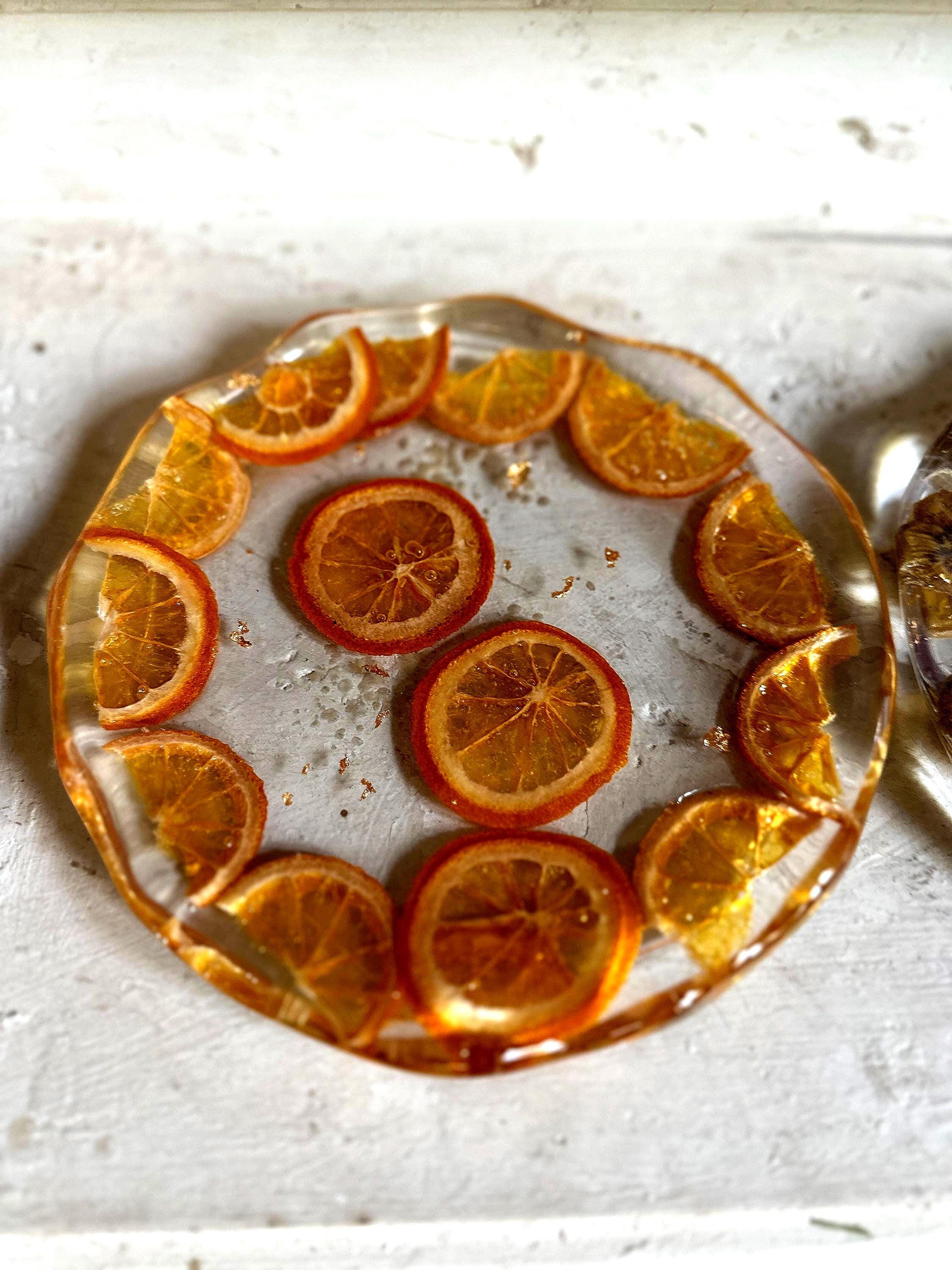 Please Note: Due to the nature of handmade resin items and real dried fruit, each dish is one-of-a-kind. Small variations in color, fruit placement, and bubble presence are normal and contribute to the unique beauty and character of your plate. Do not use this dish in the microwave or dishwasher.