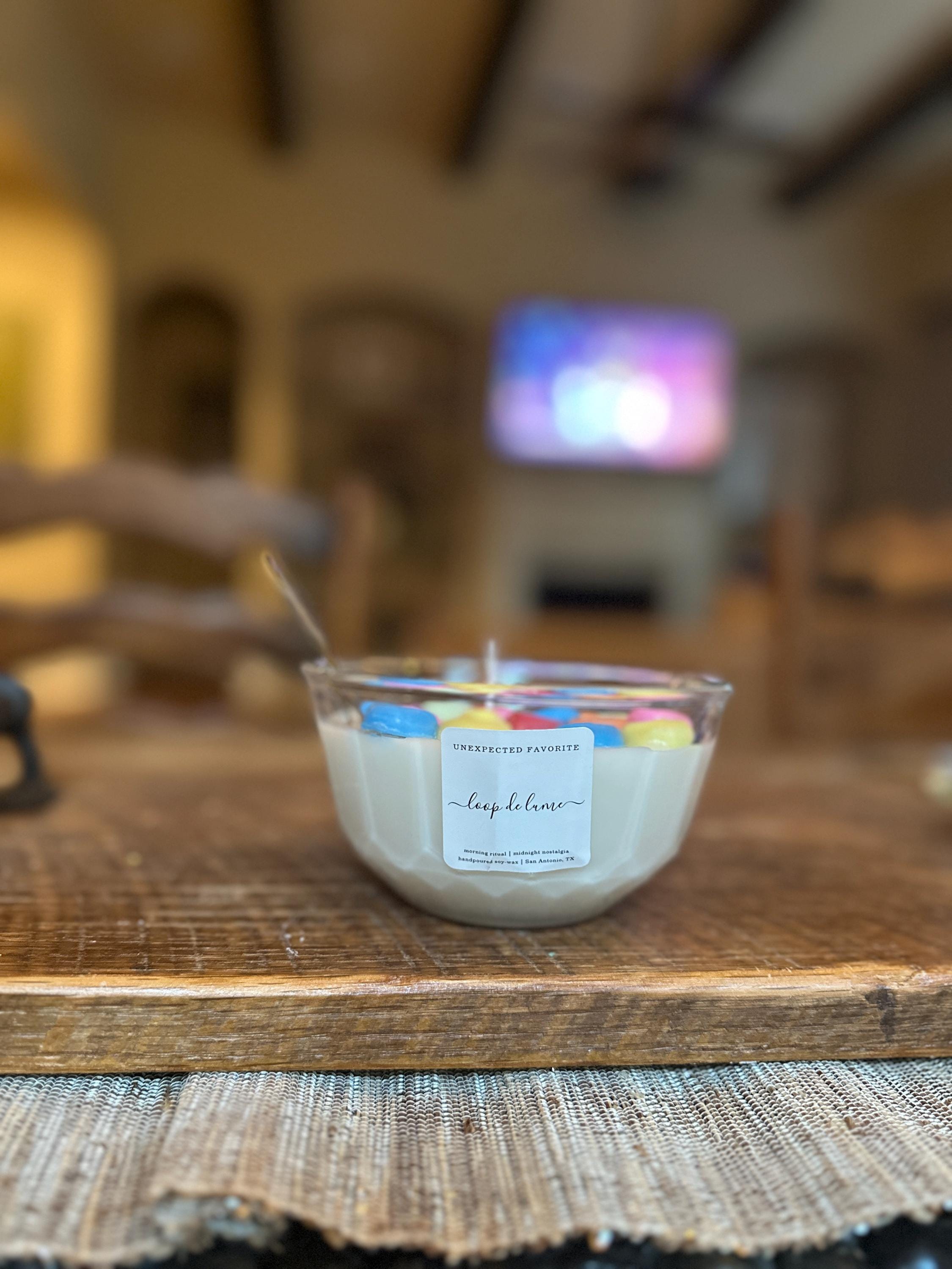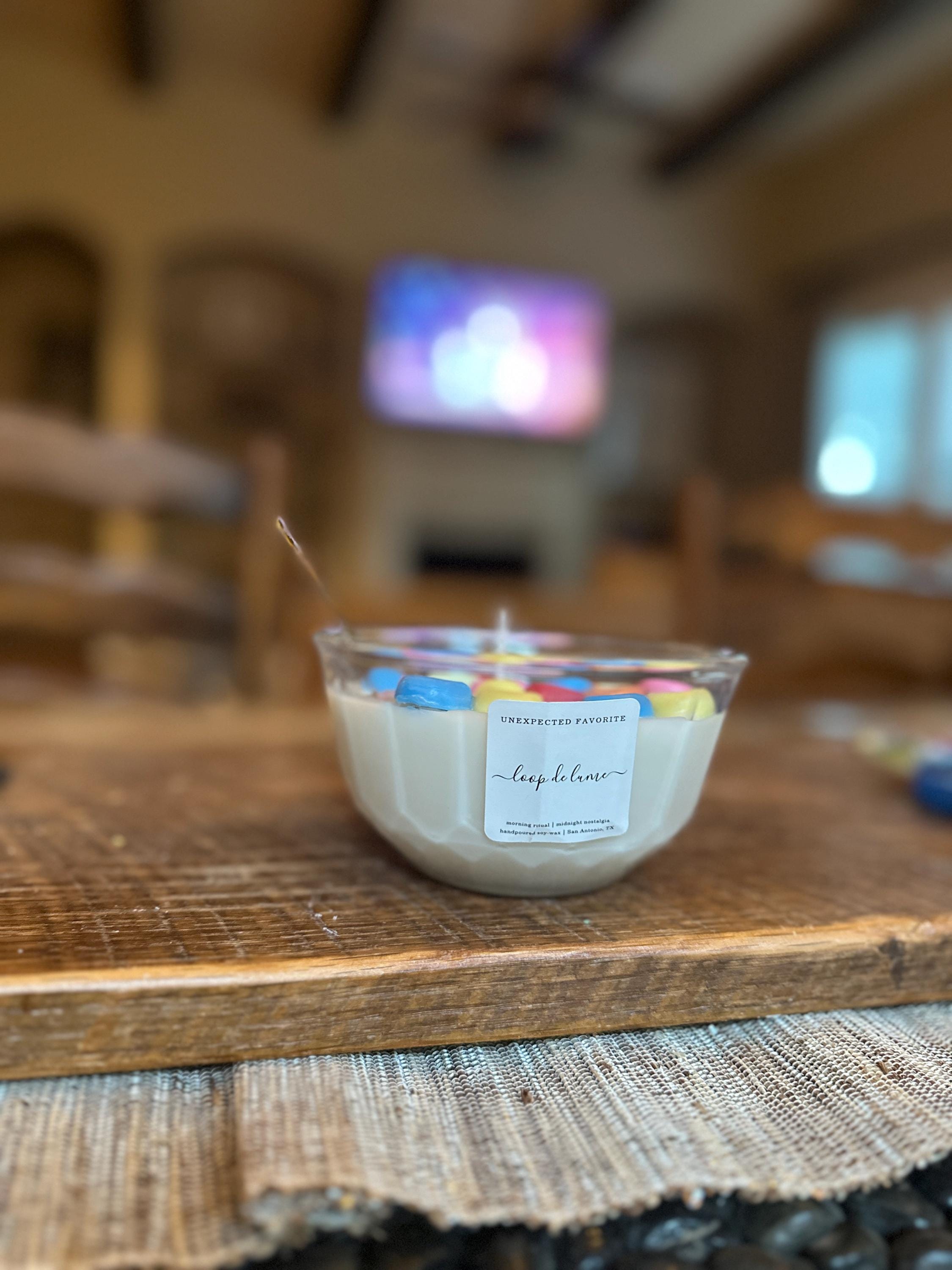Ready to capture the sweet, colorful joy of Saturday morning cartoons in a candle? Meet "Loop de Lume," a hand-poured soy wax masterpiece that isn't just a candle—it's a moment of pure, nostalgic bliss.