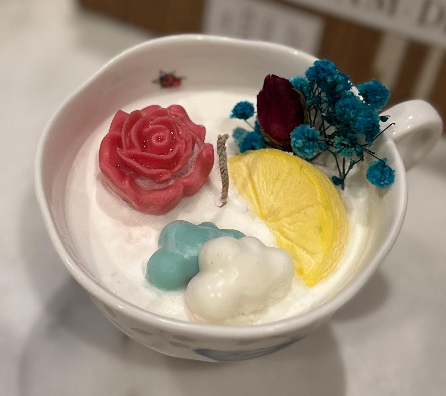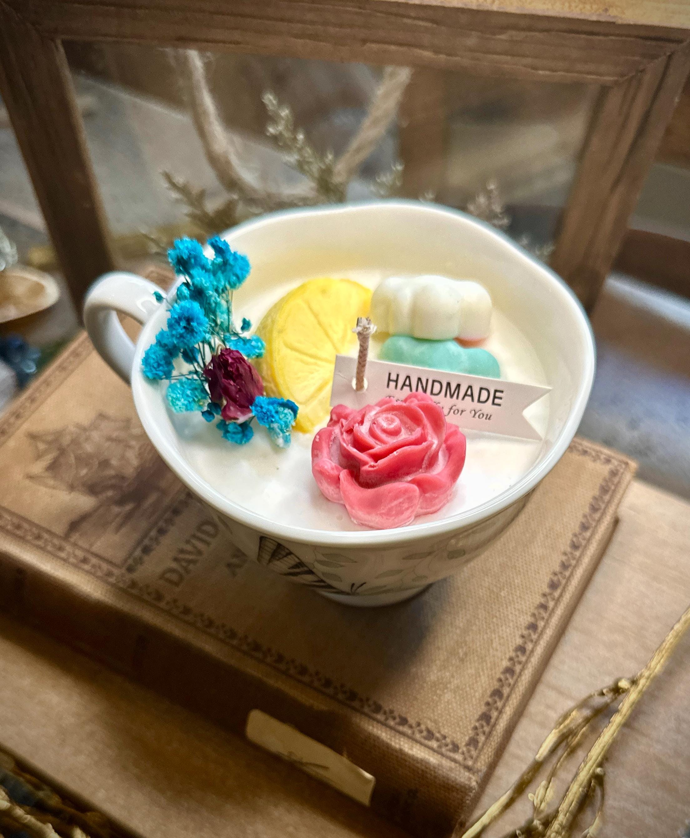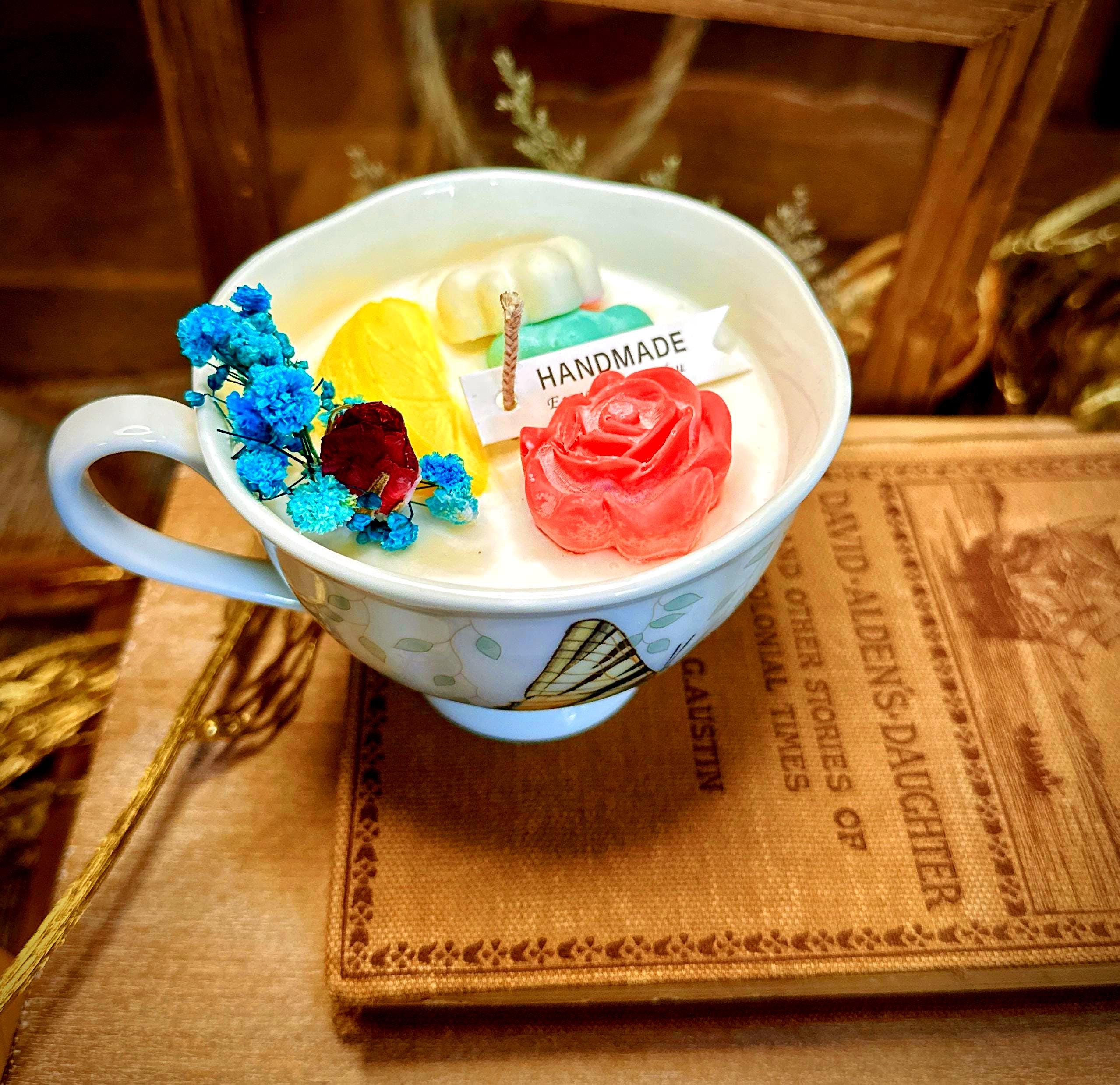 Hand-Poured Luxury & Whimsical Detail: Each candle is lovingly hand-poured with premium, eco-friendly Soy Wax for a clean, long-lasting burn. What sets this piece apart are the delightful hand-poured wax melts nestled on top, designed to mimic a captivating tea scene: