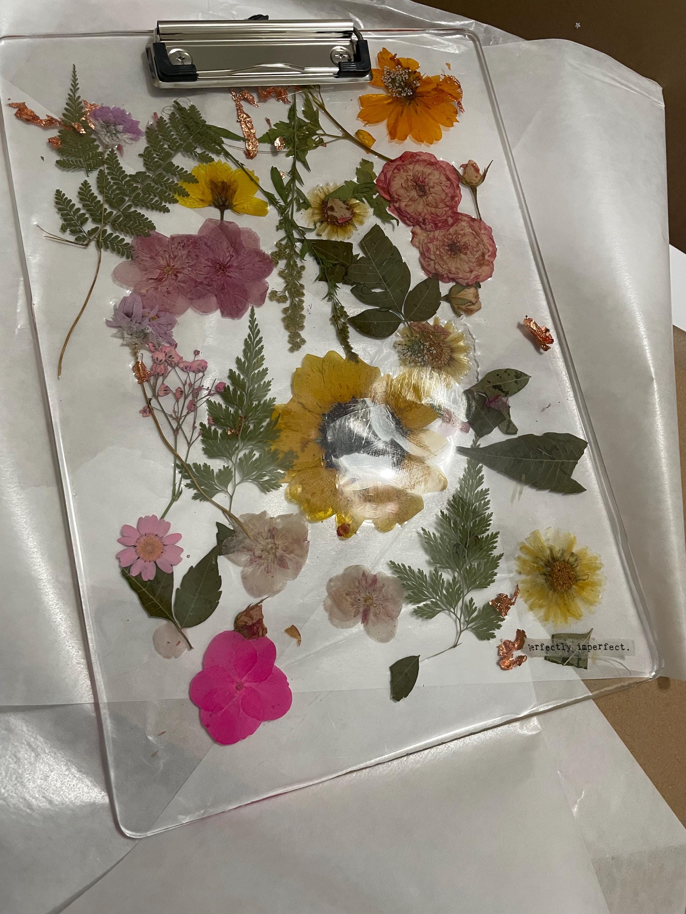 Materials: High-Quality Epoxy Resin, Real Pressed Leaves & Dried Flowers, White Resin Pigment, Sturdy Metal Clip.