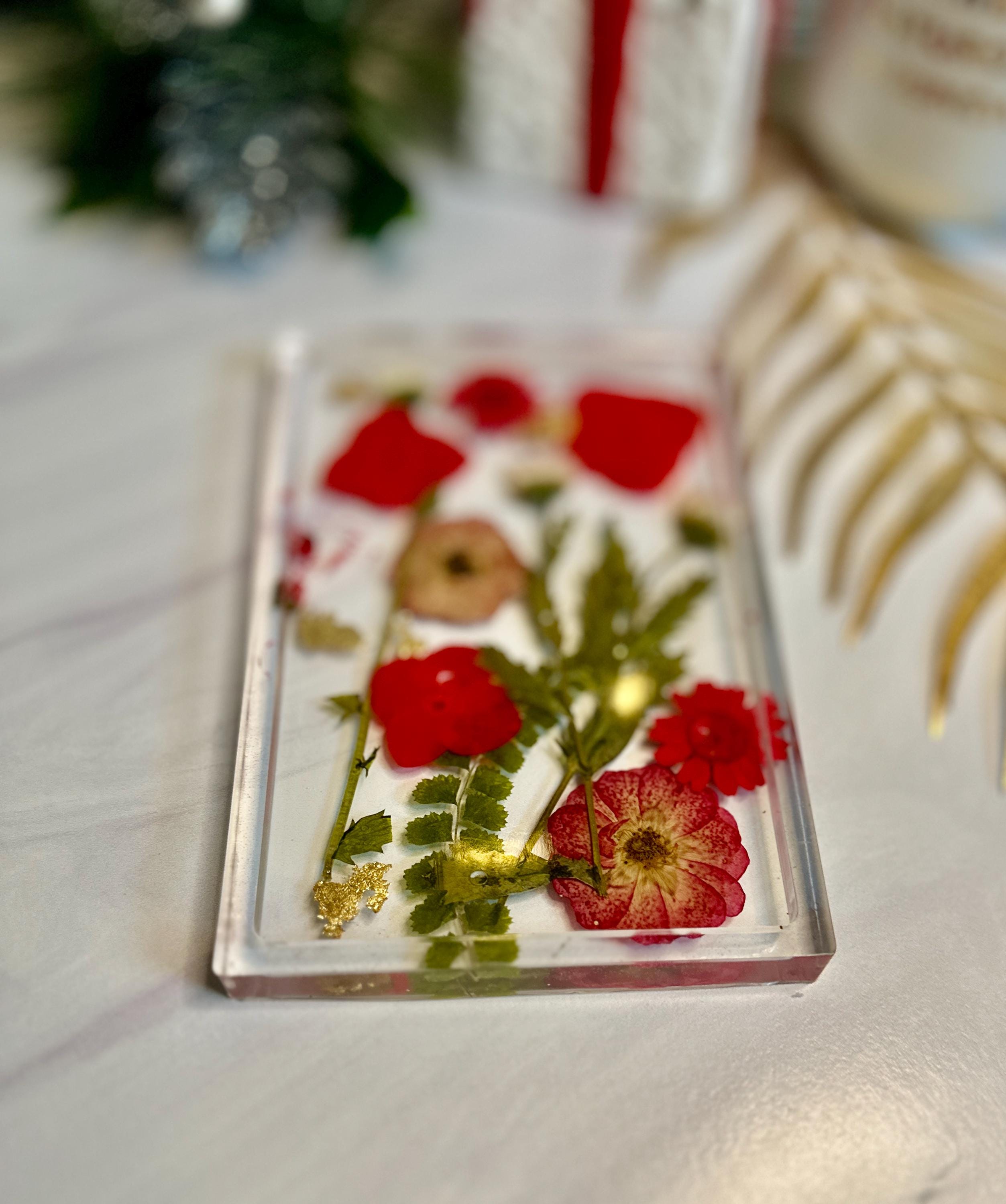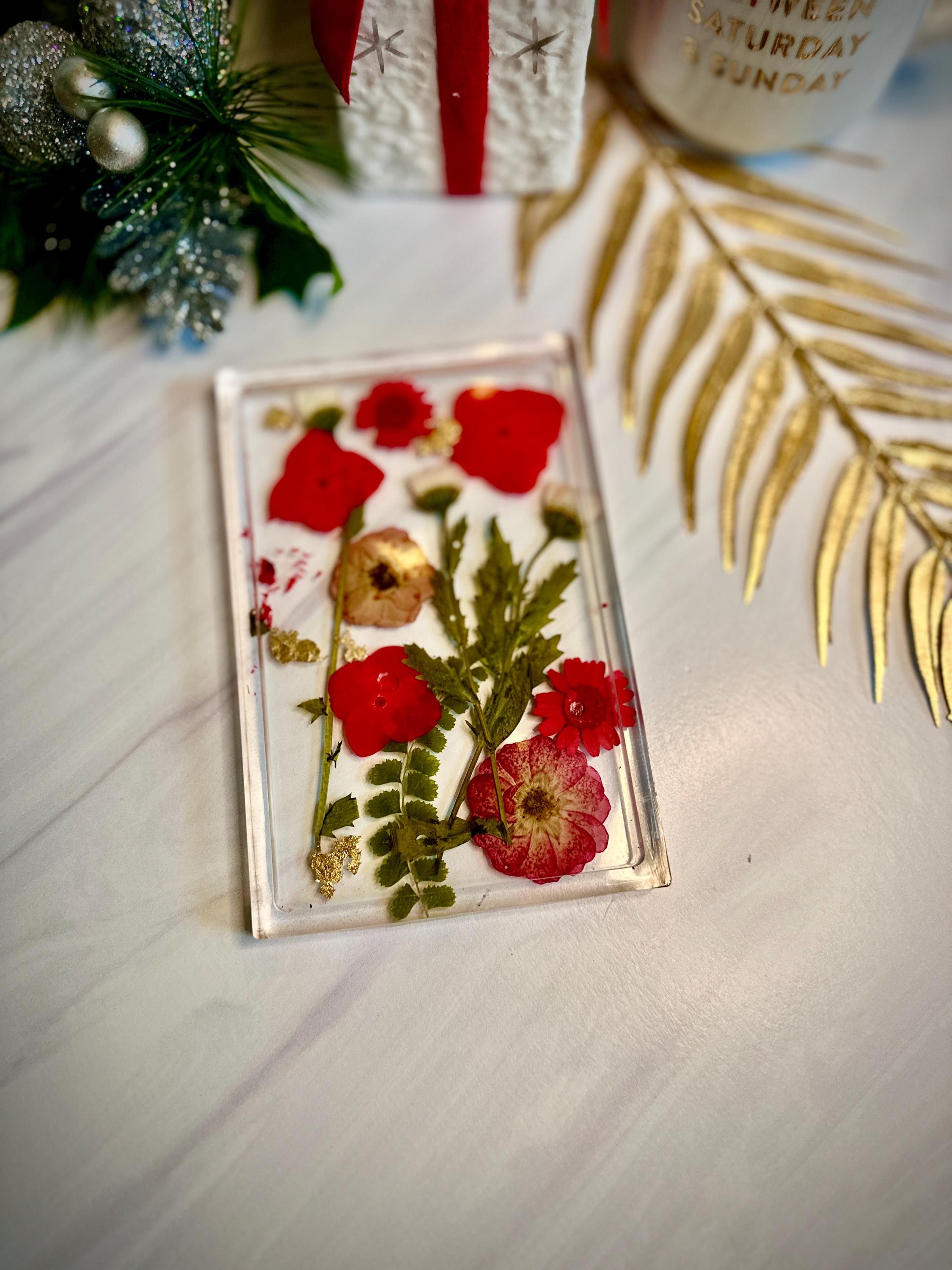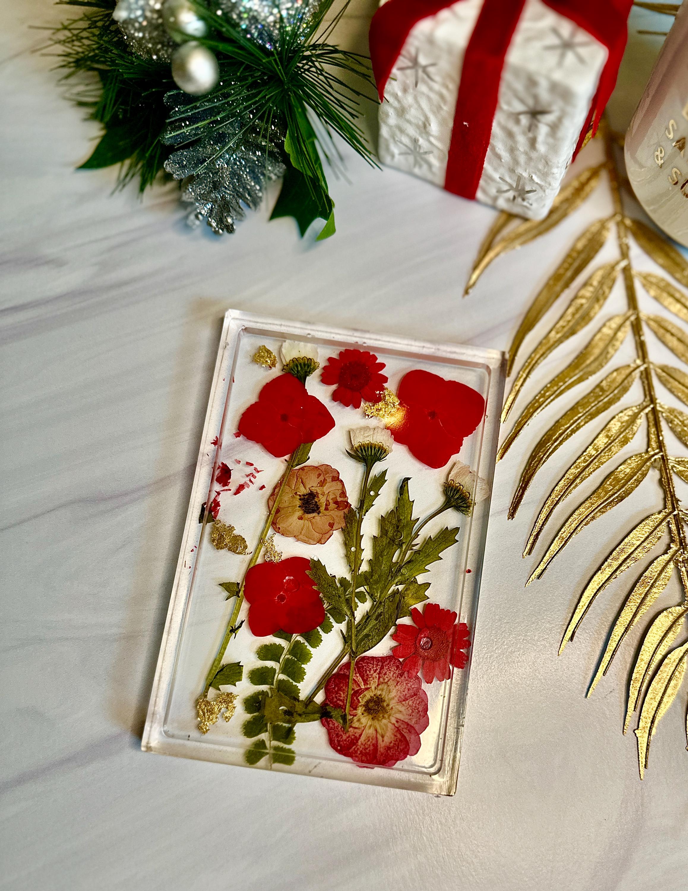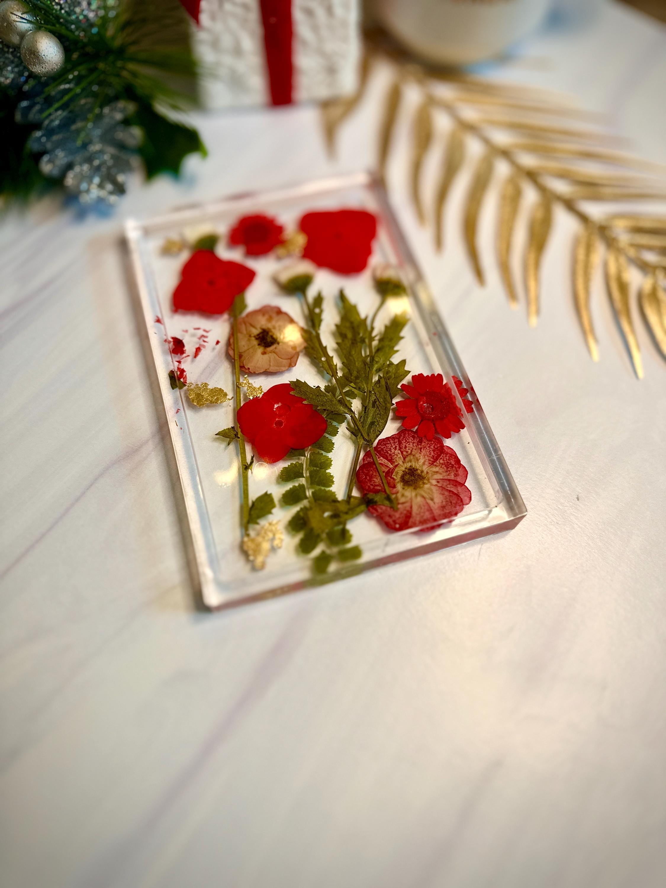 Festive Bloom: Hand-Poured Christmas Resin Vanity Tray & Jewelry Dish