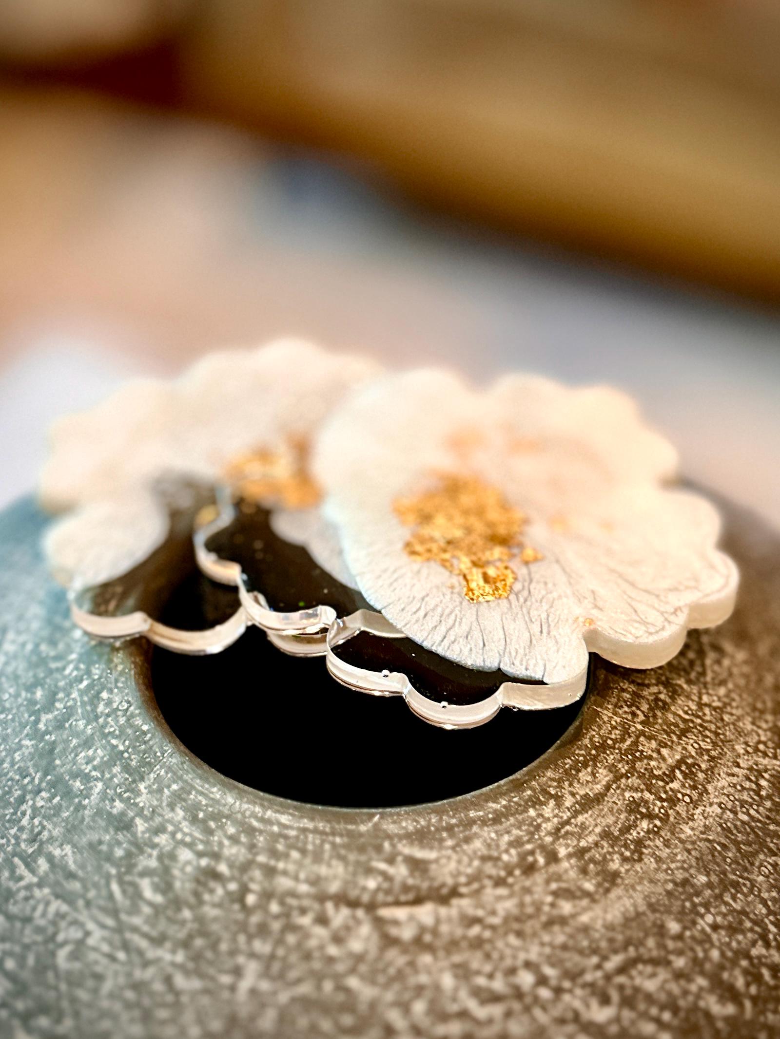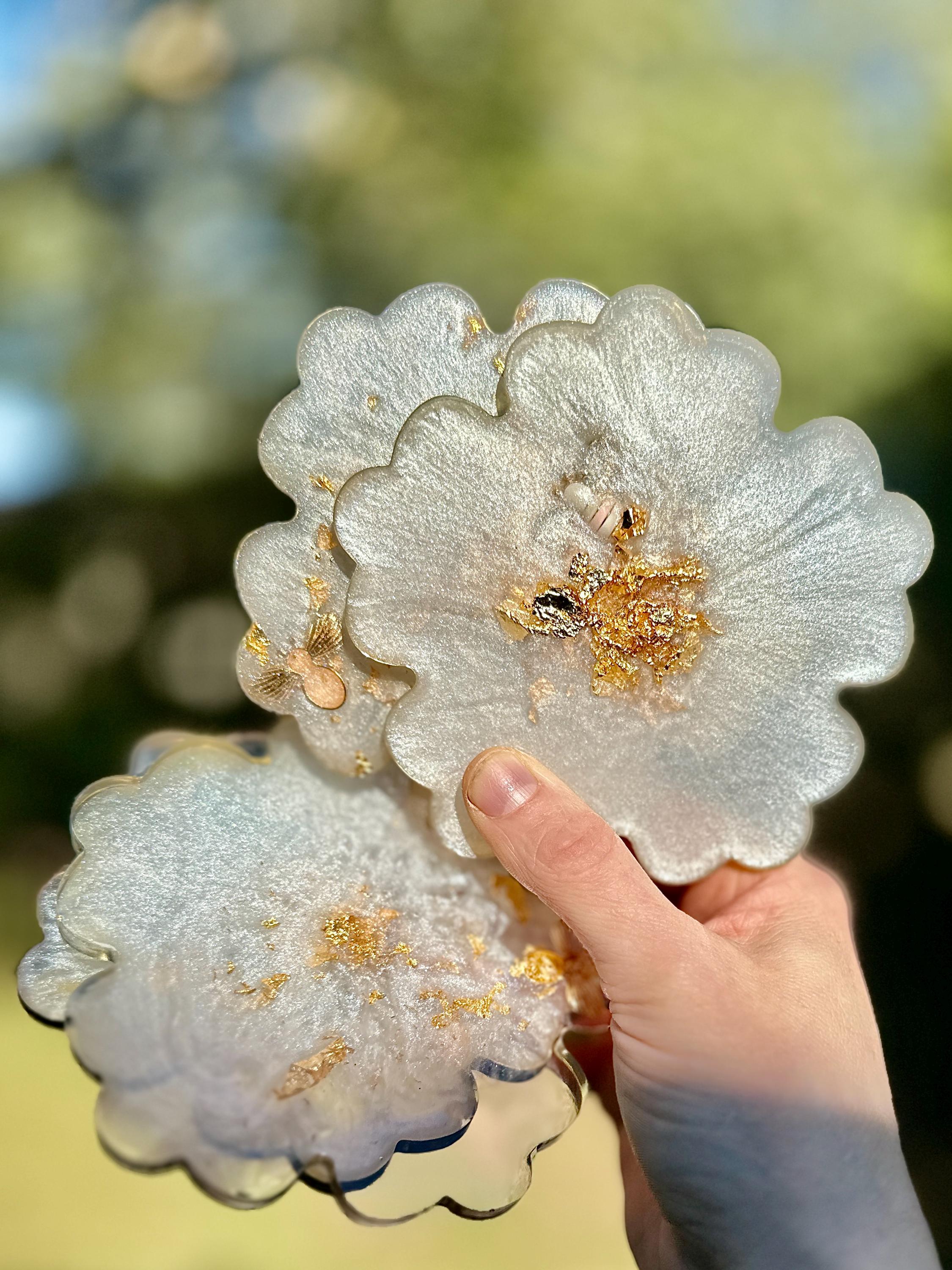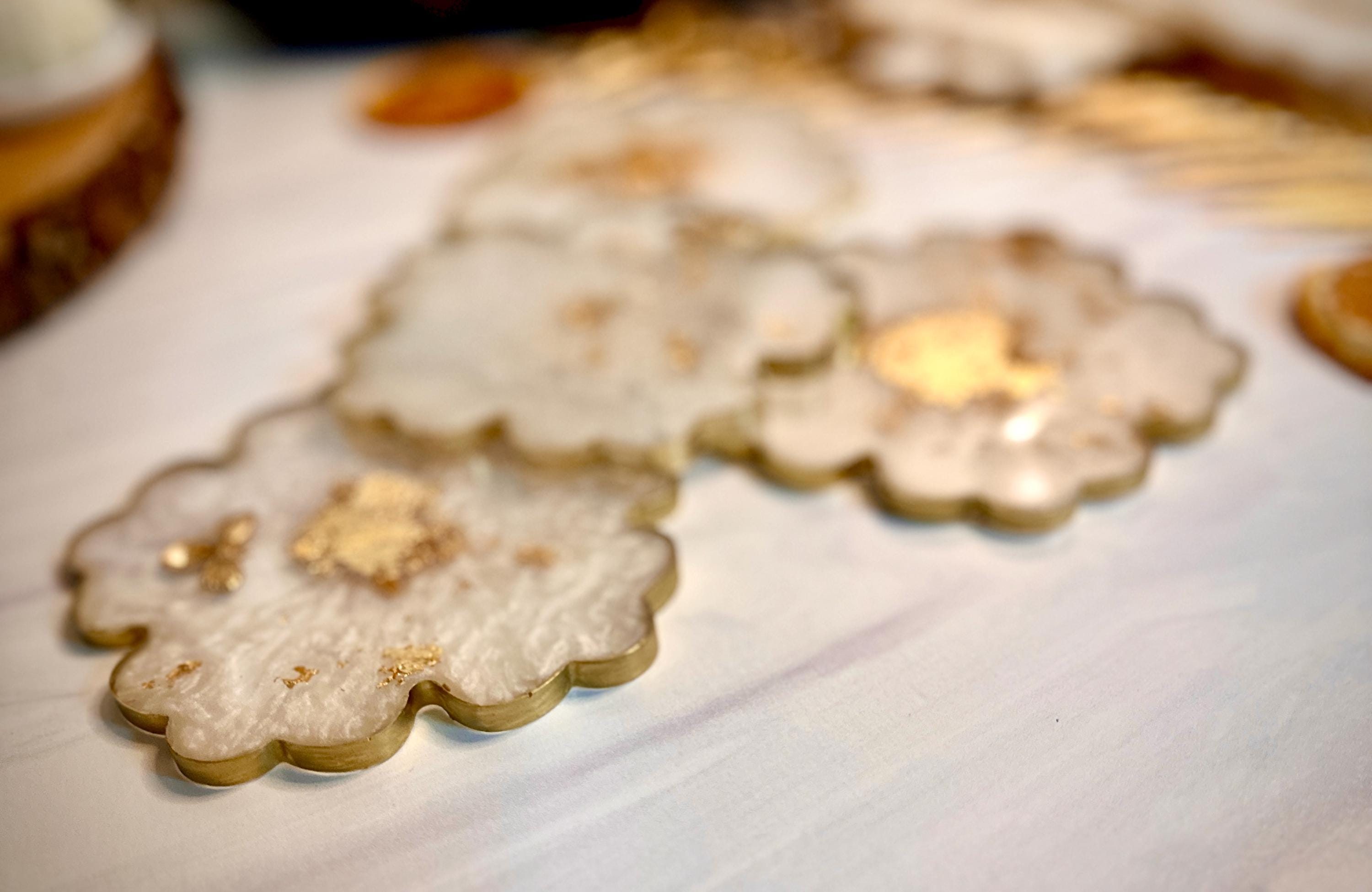 Luxury Pearl & Gold Resin Coasters: The Opulence Collection Prepare to be captivated by our best-selling, hand-poured luxury resin coaster set. These are not just coasters; they are individual pieces of shimmering, bespoke art designed to elevate any space.