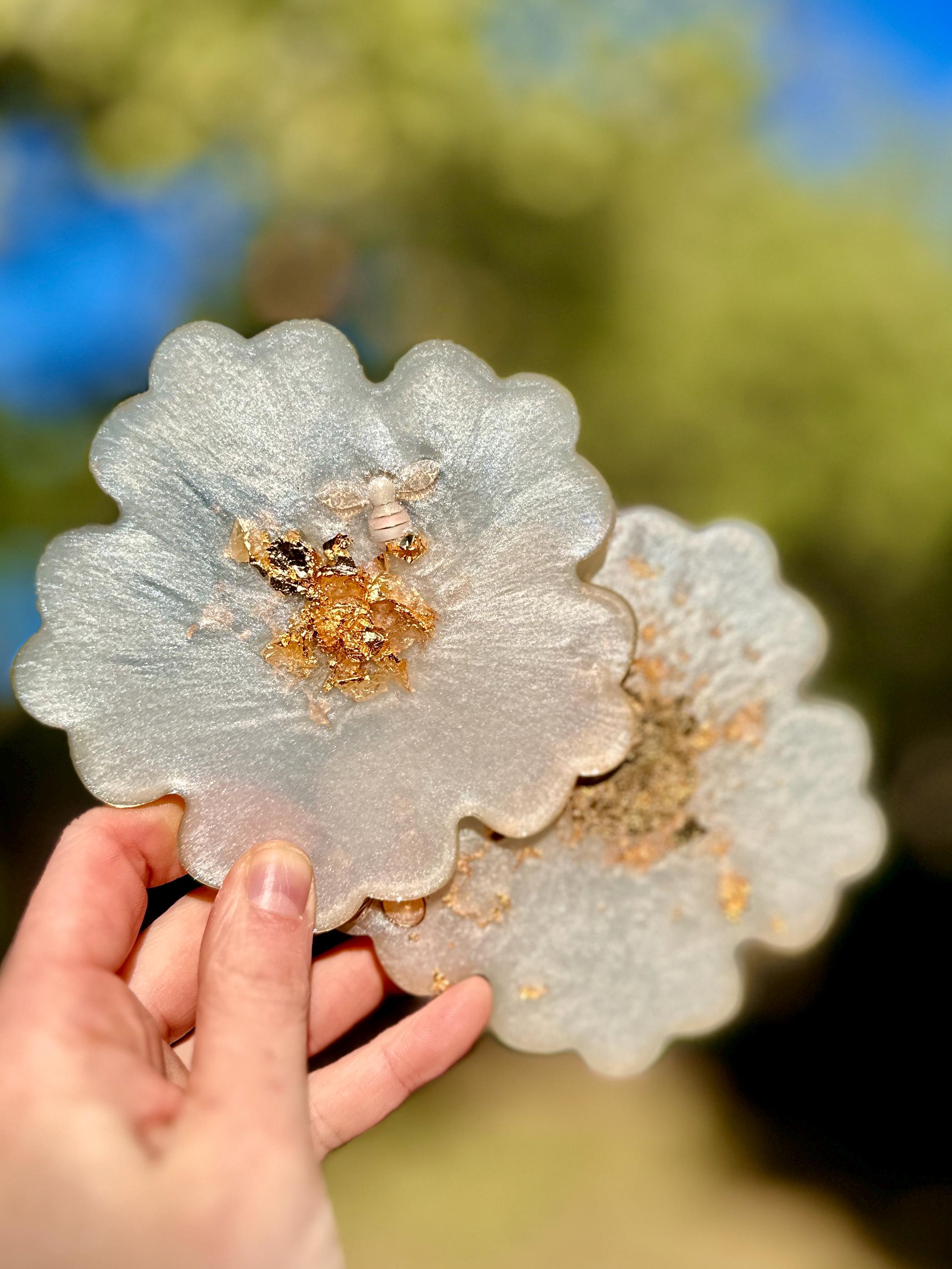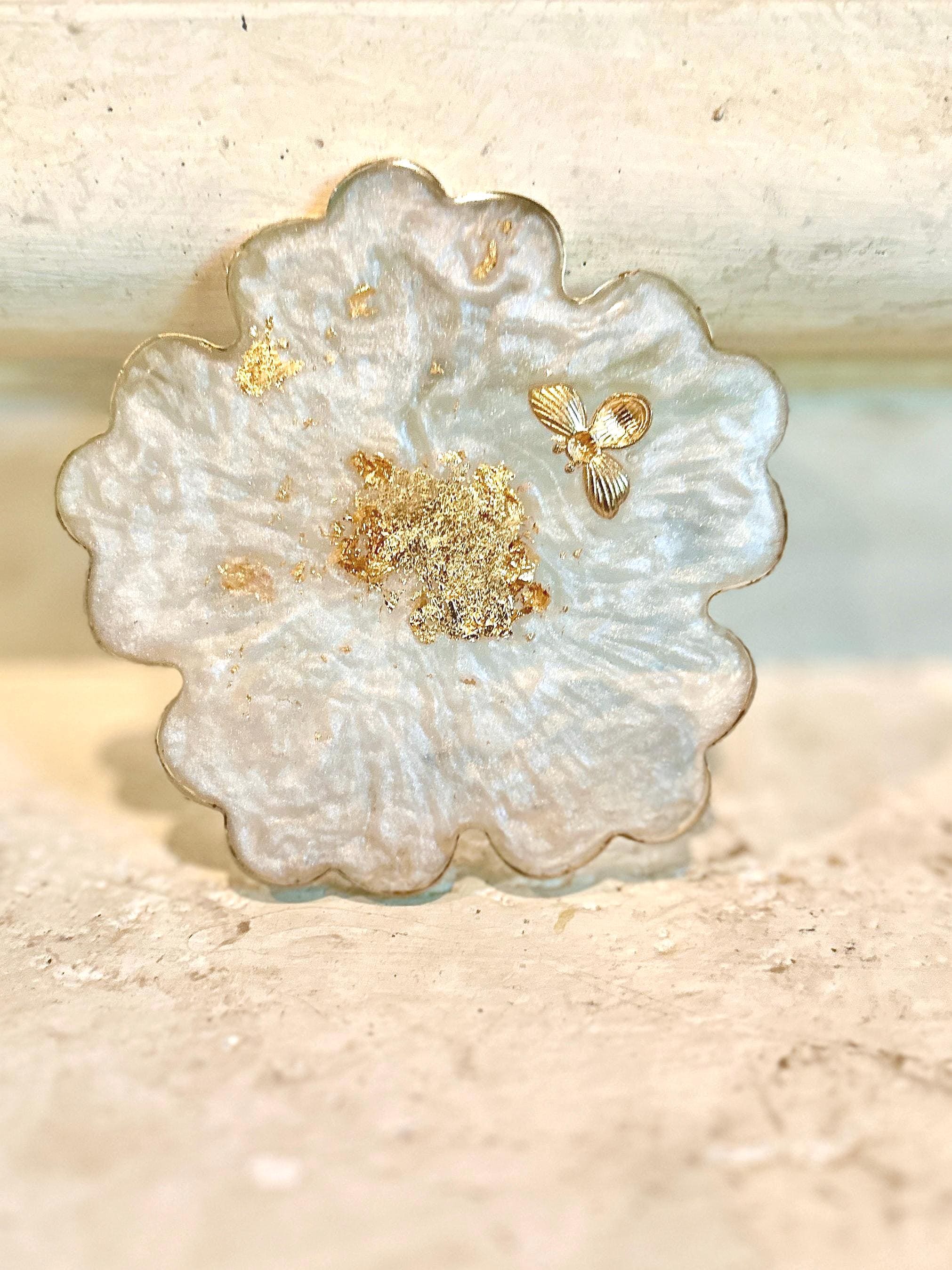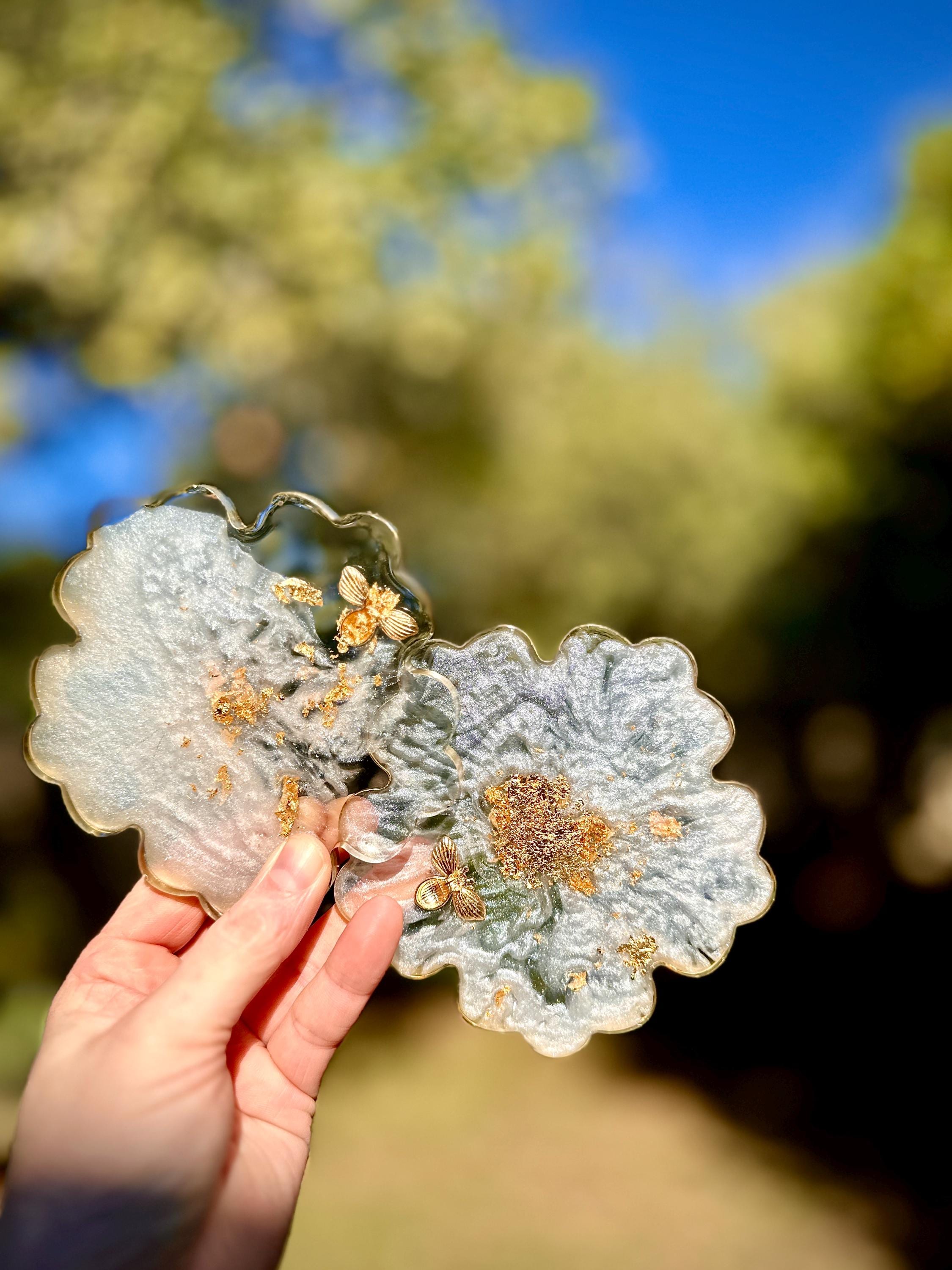 Luxury Pearl & Gold Resin Coasters: The Opulence Collection Prepare to be captivated by our best-selling, hand-poured luxury resin coaster set. These are not just coasters; they are individual pieces of shimmering, bespoke art designed to elevate any space.